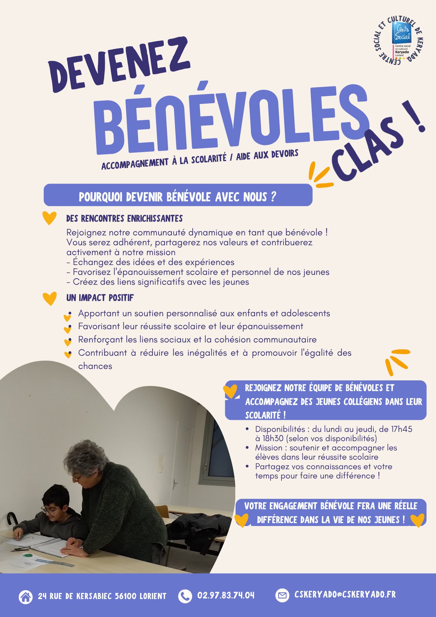 Par exemple : accompagnement à la scolarité, ateliers de français, animation d’activités loisirs.