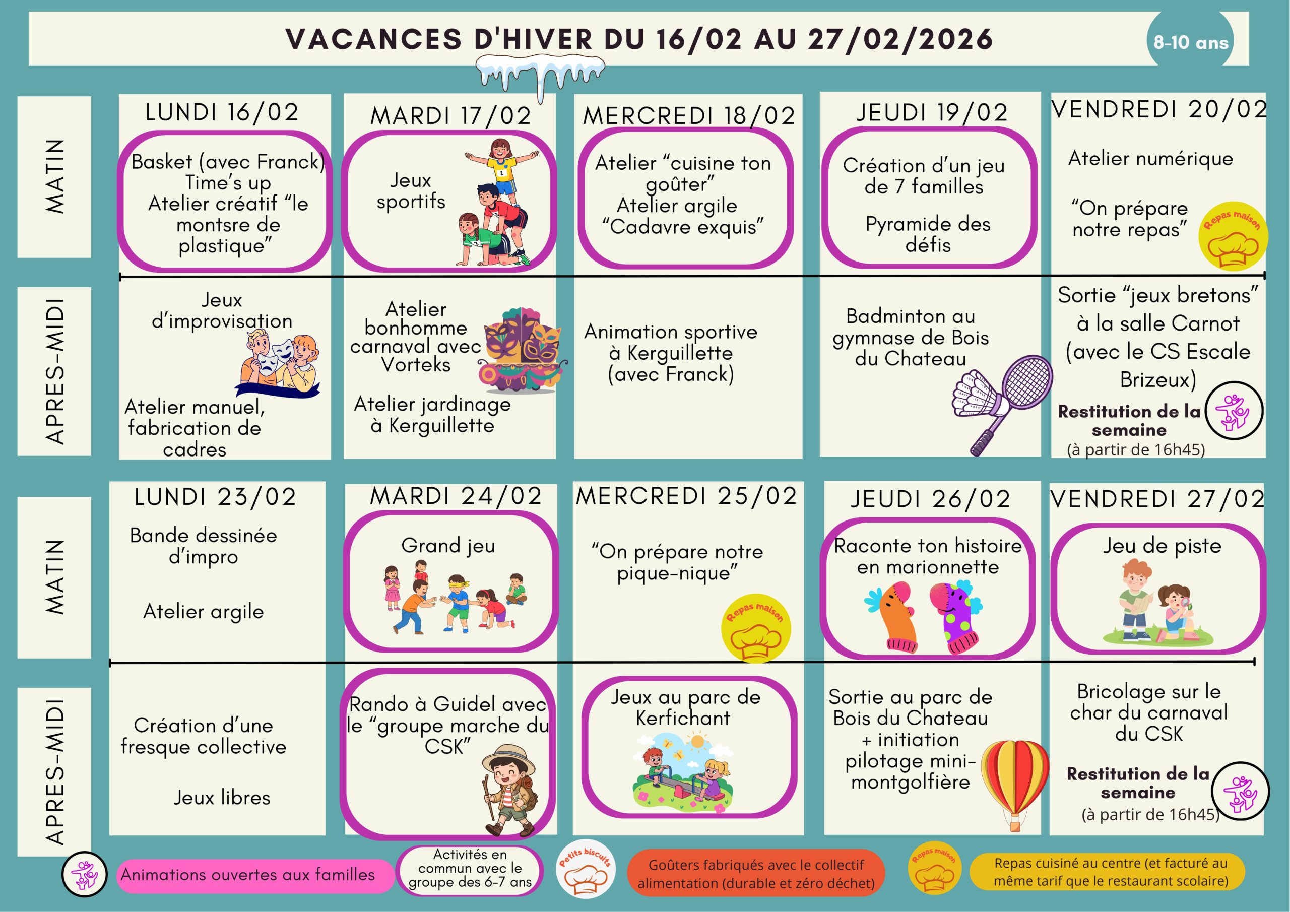 REPAS : Pendant les vacances, possibilité de temps repas pour les enfants dont les parents travaillent. Le service de restauration est proposé et facturé par la Ville de Lorient.